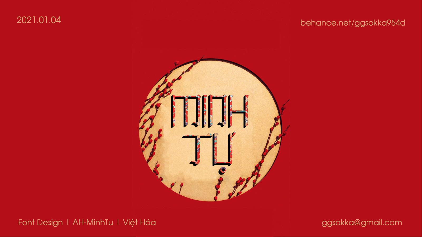 Font Minh Tự được thiết kế bởi GG SOKKA một font thư pháp khá ấn tượng với các nét chữ lấy cảm hứng từ các font chữ Trung Hoa. Font chữ khá phù hợp cho các thiết kế dịp năm mới, trung thu hoặc cổ trang.