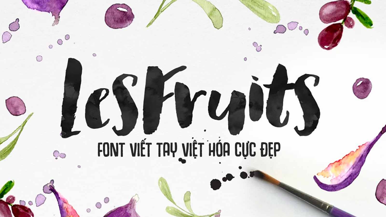 Font Les Fruits Brush Việt hóa một typeface sử dụng phong cách màu nước khá đẹp. Một phông chữ lấy cảm hứng từ những nét vẽ bằng bút lông. Phù hợp cho các thiết kế dựa trên mực hoặc màu nước như thiệp, thiết kế văn phòng phẩm, thư mời, áo phông, áp phích…