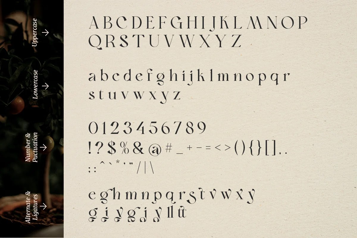 Font Bon Foyage – Vintage Modern Serif hoàn hảo cho các dự án biên tập, thiết kế logo, xây dựng thương hiệu quần áo, bao bì sản phẩm, tiêu đề tạp chí hoặc đơn giản là lớp phủ văn bản phong cách cho bất kỳ thiết kế nào.